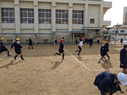 今日はぬかるみのため、運動場の使用はできませんでした。でも、晴れている日は元気いっぱいに外遊び、昼休みの様子です。多くの児童が外で長なわや鬼ごっこ、ドッジボールをして元気よく遊んでいました。