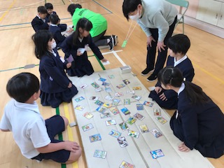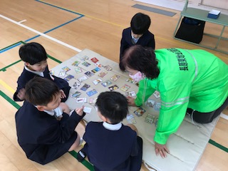 大きめで紙がしっかりした「かるた」の札は、とても見やすくて、みんな真剣に札を探しとっていました。