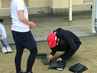 タブレットで動きを撮り、確認しながらソーラン節をしあげています。完成に近づき、やる気も絶好調です。気合いが入っています!