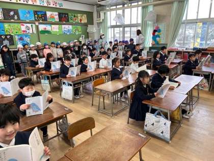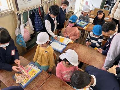 1年生の教室へ、新1年生が遊びに来てくれました。