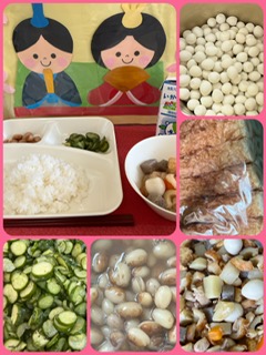 「関東煮」は、鶏肉、ちくわ、じゃがいも こんにゃく、厚揚げ、だいこん、にんじん、うずら卵を使用しています。程よい甘みと各々の素材にしっかり味が染み込んでいて、ご飯に合う献立でした。「とら豆の煮もの」は、お豆がとても柔らかくてふっくらと煮えていました。
