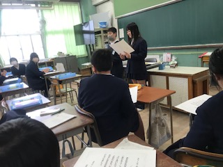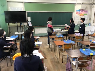 クリーンデーで掃除をがんばってきた学級への表彰式の練習です。本番でうまくできるよう聞き合っていました。