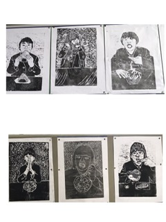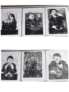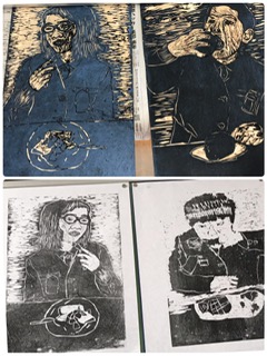 自分を版画にしています。本当にびっくりするほど、実物そっくり、とても味わいある作品ができました。