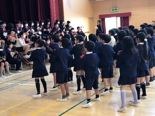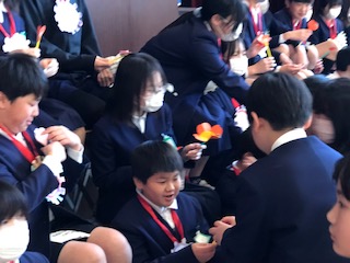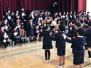 パプリカを歌って踊りました。6年生も一緒に楽しみました。手拍子やダンスで、一つになりました。手作りのお花を一人ずつ渡しました。6年生も一緒に楽しむ姿が優しさを伝えるひとときでした。