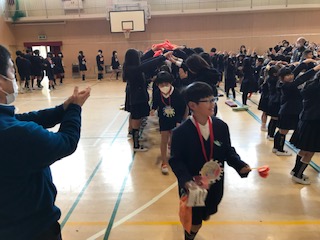 最後は、在校生でアーチをつくり、6年生を送りました。心こもったアーチ、体を小さくしてくぐっていくお兄さん、お姉さんに、笑顔いっぱいの在校生。最高の会になりました。