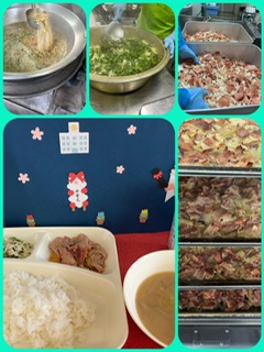 「さつまいものみそ汁」は、さつまいも、はくさい、ごぼう にんじん青みに青ねぎを使用しています。さつまいもがすごく甘くて、ごぼうとお出汁の風味がよく、ご飯にとてもよく合う献立でした。