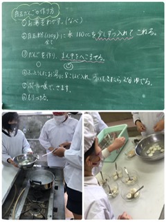 5年最後の調理実習は、白玉団子づくりです。茹でて団子ができる様子に興味津々でした。きな粉とあんこも準備して、デザートになります。今日は給食でも、よもぎ団子がでました。嬉しい団子デーになりました!