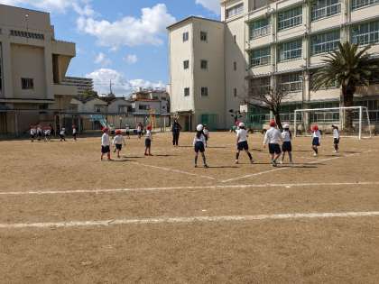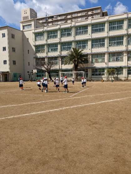 1年生は、体育でドッジボールをして、楽しんでいました。