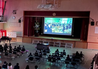2年生からの「学校生活紹介のビデオ」もありました。学習や給食、休憩時間の様子に興味津々の様子でした。月曜日の登校が楽しみですね。