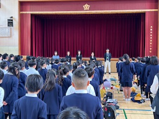 始業式では、まず、転任・着任した教職員の紹介や転入生の紹介、担任紹介など、子ども達が待ちに待った話が続きました。