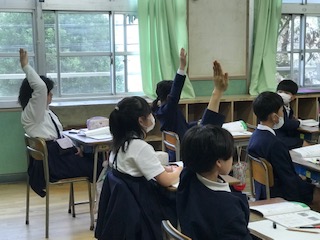 多くなった桁数の学習です。熱心に学習に向かい、手の挙げかたも素晴らしいですね。