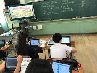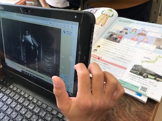 憲法について学習しています。教科書下にあるQRコードを読み取ると、資料や動画が出てきます。まさにデジタル化!デジタル教科書の威力です。