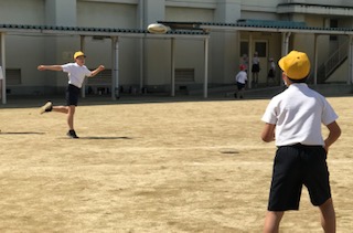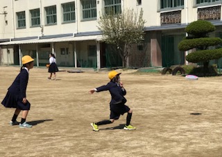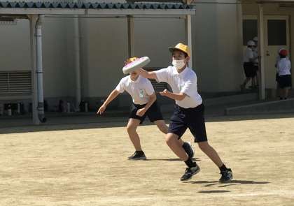 最近、子ども達の間では、フリスビーが流行っています。楽しみながら自然に投げる運動の能力向上を図っています