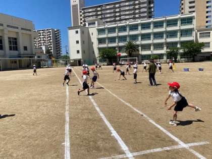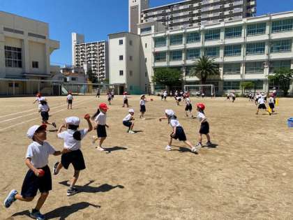 遠くへ投げようと、意欲をもって練習に取り組めました。