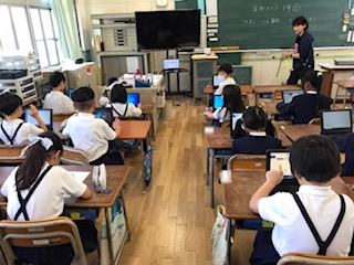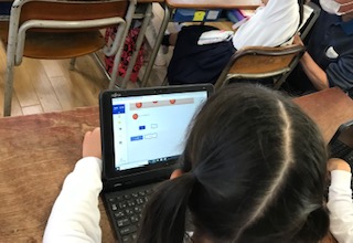 朝学習のみなみタイムで、モジュールが始まりました。タブレットで、自分の課題を解決しています。うまくつかいこなせるようになってきました。