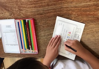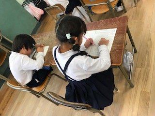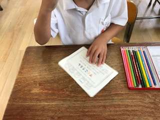 しおりに色をつけて楽しく仕上げています。見るだけでも、遠足本番まで、ワクワクしますね。