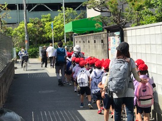今日は、1年2年が出戸公園に遠足に出かけした。からりと晴れて、さわやかな晴れになり、元気に気持ちよく学校を出発しました。とても楽しみにしている様子で、にこやかな笑顔がたくさん見られました。