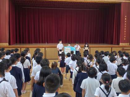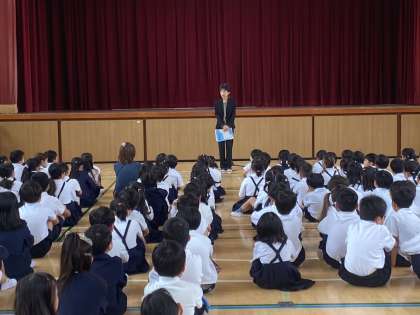 〇5月の目標「学校のきまりを守ろう」です。「長吉南小学校の生活」をもう一度しっかりと読んで、一人一人がきりつ正しい長吉南小学校をつくっていきましょう。