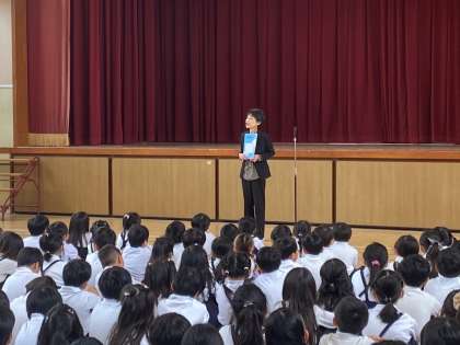 ・今年度は、全校の取組として、みなさんに学習習慣を身に付けることをめざして、自主学習を進めます。自主学習には、2種類あります。興味・関心があることを更に調べる学習。もう一つは、学校の学習内容の予習・復習や苦手を克服するための学習です。両方の学習方法をしっかりと身に付けてください。