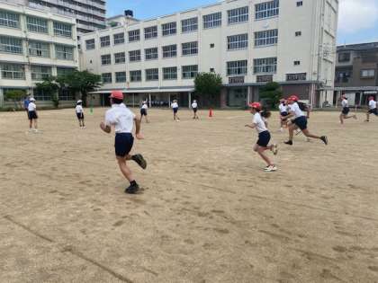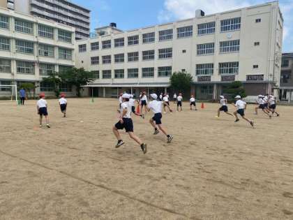 先月に引き続き、6年生がトップアスリート夢授業を行いました。今日はリレーの学習です。