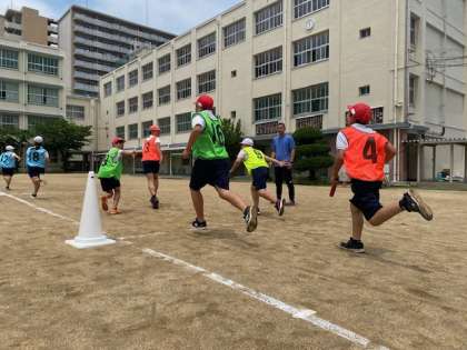 バトンパスがうまくいかない時もありましたが、すぐにバトンを拾い、諦めずに走っていました。
