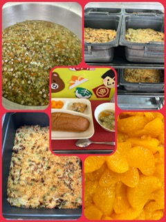 マカロニグラタン キャベツのスープ みかん(缶) 黒糖パン 牛乳