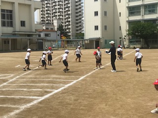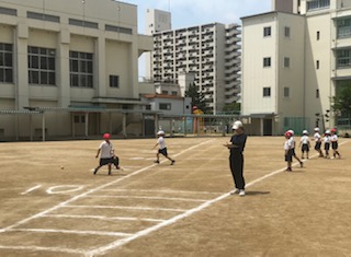 1年 体育2 ソフトボール投げの測定