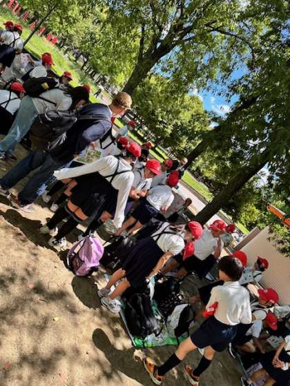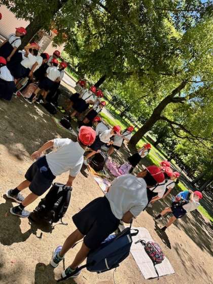 昨日の雨とは違い、青空のもと久宝寺緑地に着きました。オリエンテーリングやお弁当の時間など、楽しみなことがたくさんです。