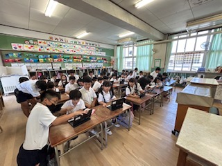 1年生がはじめてタブレットの学習をした日の様子です。6年生とペアになり、お兄さん、お姉さんから、ログインの方法や初期操作を教えてもらいました。