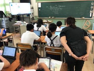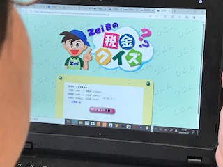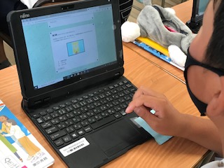 公民の内容を学習、最近の話題となっていることも学んでいます。タブレットで個々に復習もしています。