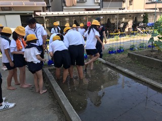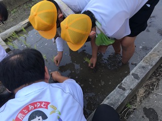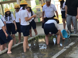 JA(農協)の方の出前授業により、今日は田植えを行いました。昔は、このあたりも田んぼが多かったと聞いています。学習園の田んぼで限られたスペースですが、子ども達はこの日の体験学習を楽しみに学んできました。秋の収穫までしっかりと育てていきましょう。