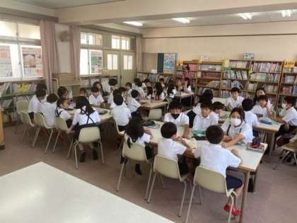 読み終わった後、各グループでどんなお化けが出てきたか話し合いました。
