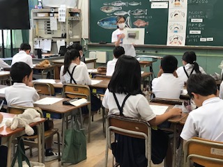 今日は、長吉小学校より栄養教諭に来ていただきました。魚について、その栄養と体に良いことを学び、上手な魚の食べ方も教わりました。しっかりと覚えて、生活に役立ててほしいと思います。