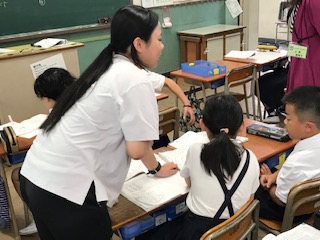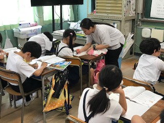 問題ができたら、先生に添削してもらいます。「字がきれいですね」「しっかり書けているね」「よくできたね」など、先生からの一声に、とてもうれしそうな表情を見せていました。