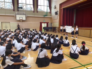 7月1日児童朝会「平和と人権の日」「いじめゼロ宣言」について