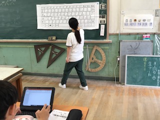 英語の文をパソコンに入力する練習です。ピリオドやカンマ(コンマ間隔のあけ方など、日本語とはまた違ったところがたくさんあり、キーボードの掲示を見ながら頑張っていました。