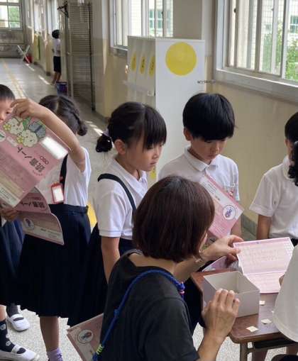 シールを張る方ももらう方もニコニコ笑顔でした。夏休みにもたくさん本を読んでくださいね。