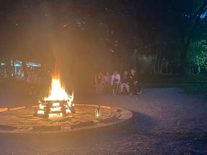 歌やダンス、ゲームなど、とても楽しみながらキャンプファイヤーを行っています!