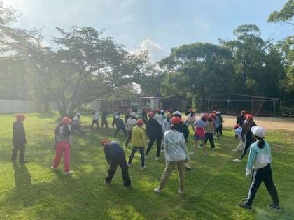 朝の体操を終え、今日の活動の予定を確認しました。