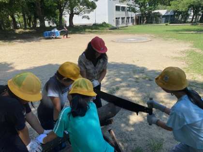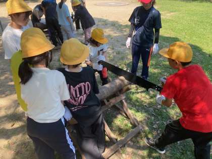 協力して薪作りをしています。