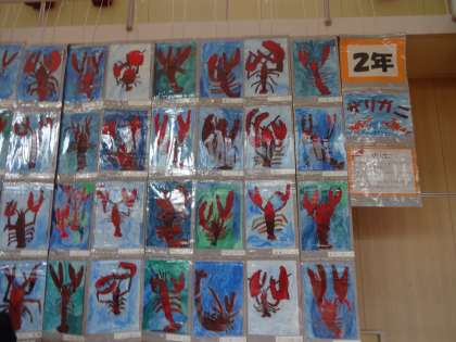 作品展には2年生から「ザリガニ」と「おしゃれできれいなとり」を出品しました。