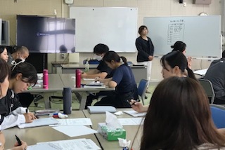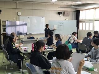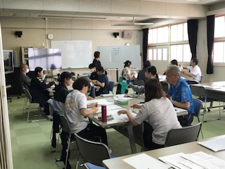 午後からは、ホワイトボードを使った表現の研修その2です。本年度、子ども達一人一人に授業用ホワイトボードを配付しています。さまざまなシーンで活用して、授業や仲間づくりに活かしたいと、先生たちも学んでいます。