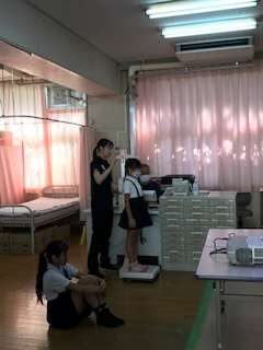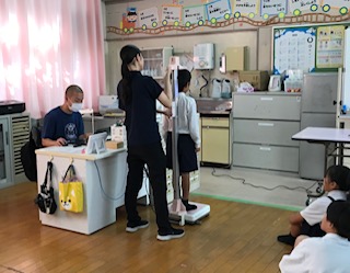 各学級ごとに、養護教諭から保健に関するミニ授業を受けた後に測定をします。