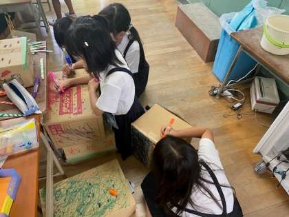 昨年度、2年生として1年生を招待した3年生が、2年生の見本として「おもちゃランド」をもう一度計画してグループごとにお店の準備をしています。