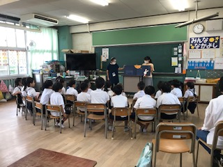 平野図書館のボランティアのみなさんを招き、読み聞かせをしていただきました。今日は、1年と2年の日、子ども達は楽しみにしていました。
