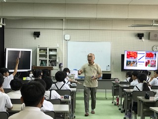 本校で初の授業です!で、今は伝統工芸体験学習を実施されている元大阪市立小学校長の川本隆史先生をお招きしてキャリア教育「伝統工芸(トンボ玉)」の体験学習を行いました。