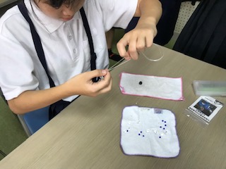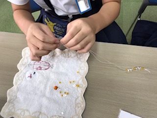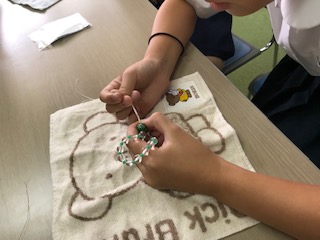 トンボ玉を使ったブレスレットの体験学習です。