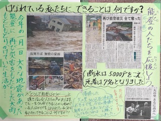 なにより一番悲しいことは、甚大な被害とやり場のない悲しみと闘っておられる方々を忘れてしまうことです。子ども達とともに能登地方の1日も早い復興を願い、「あたりまえへの日常」への感謝を忘れず過ごしたいと思います。