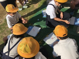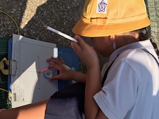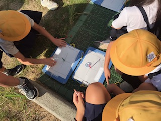 方位磁石とシートの向きを合わせることが少し難しかったようですが、がんばっていました。さぁ、観測の始まりです。しっかり観察と記録をしてくださいね。