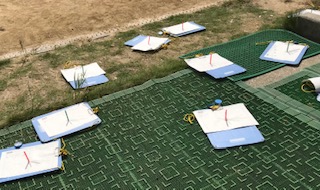 給食の時間を迎えました。子ども達がセットした観測道具には、しっかりと影の動きが表れています。結果がどうなるか、子ども達も楽しみにしています。